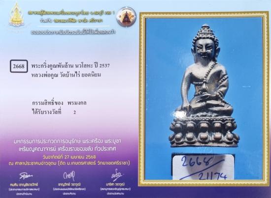 พระกริ่งคูณพันล้าน เนื้อนวโลหะ ปี 2537 พร้อมใบประกาศ ติดรางวัลที่ 2 งานจังหวัดชลบุรี (งานสมาคมฯ)