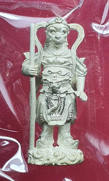 เจ้าพ่อเห้งเจีย รุ่นสะท้านไตรภพ พิธีมหาพุทธาภิเษกที่ยิ่งใหญ่ ณ.ศาลพระกาฬ จ.ลพบุรี พ.ศ.2547 เนื้อเงินพ่นทรายขัดเงา ตอกโค๊ต๙ ตอกเลข61 สูงรวมฐาน 2.6 ซ.ม. เก็บไว้ดีมากๆซีนในถุงเดิมๆ no.02