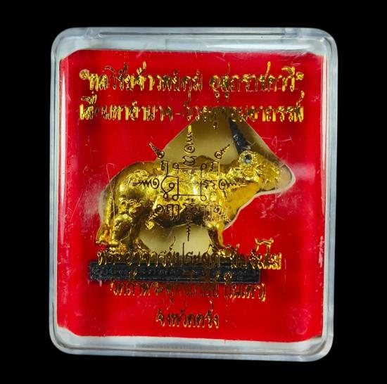 "วัวธนูจอมอาถรรพ์ พระอาจารย์ประสูติ วัดในเตา จังหวัดตรัง องค์มีขนาดค่อนข้างใหญ่สวยๆกล่องเดิมวัดใจ 100 แดงครับ/สีทองตัวที่2 |