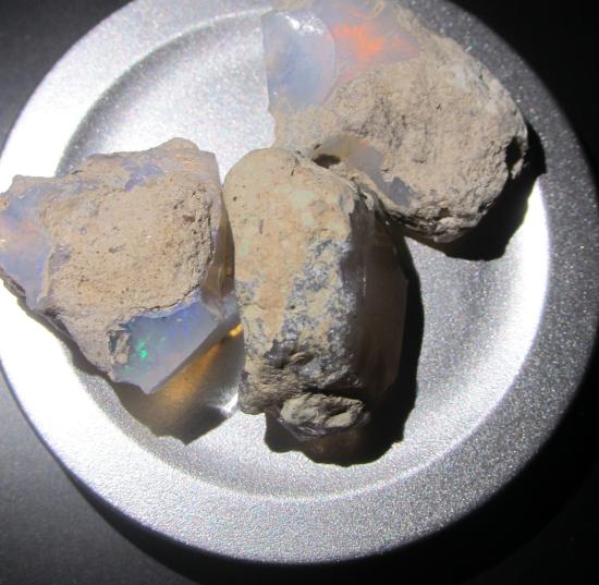 โอปอล (ดิบ) มีเหลือบรุ้งเมื่อนำมาเล่นกับแสงไฟ