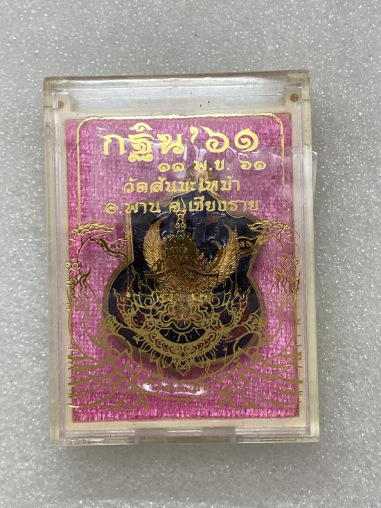 เหรียญพญาครุฑ ด้านหลังท้าวเวสสุวรรณ กฐินสามัคคีปี61 ครูบาวิรุต วัดสันมะเหม้า เนื้อทองแดงลงยา ก็ล่องเดิม |