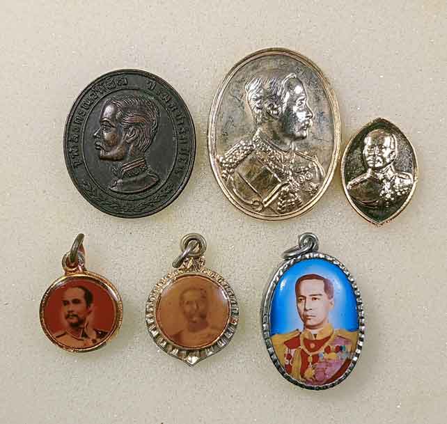เหรียญ 3 เหรียญ + ล็อกเก็ต 2 องค์ ร.5 + ล็อกเก็ต หลวงขุมพรฯ + เหรียญ 5 บาท 3 เหรียญ + เหรียญ10บาท 2 เหรียญ + เหรียญต่างประเทศ 4 เหรียญ |