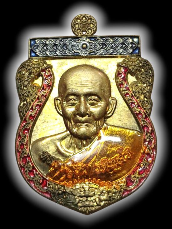 A7501.เหรียญเศรษฐีน้อย หลวงปู่ฮก วัดราษฎร์เรืองสุข ปี ๒๕๕๙ เนื้อทองฝาบาตรลงยา |