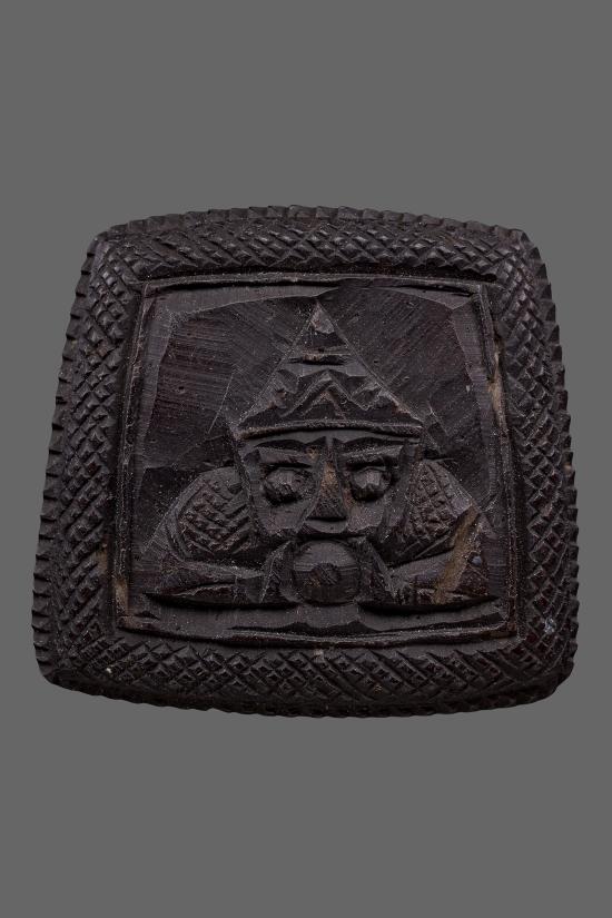 วัดใจ!!! กะลา ราหูแกะ หลังมีจาร ไม่ทราบที่ ( กว้าง 3 ซม. ยาว 3.5 ซม.) |