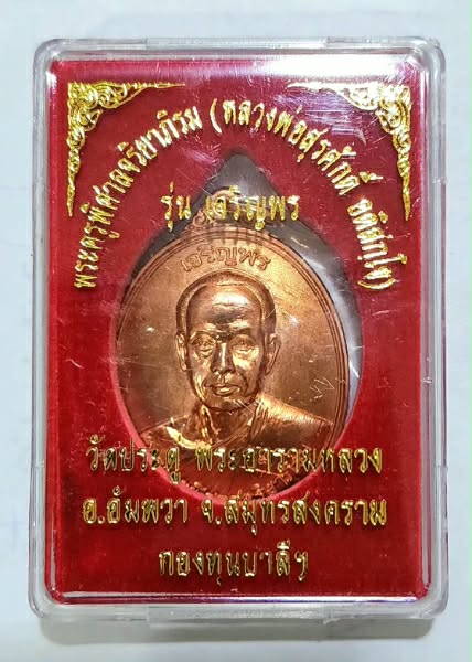 พระสวย.. เหรียญเจริญพร "ครึ่งองค์" พระมหาสุรศักดิ์ วัดประดู่พระอารามหลวง เนื้อทองแดง หมายเลข 9626 พร้อมกล่องเดิม |