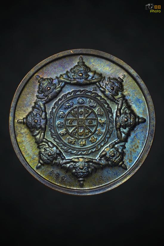 เหรียญปิดตาพังพระกาฬ รุ่นปกเกล้า ปี49 เนื้อนวะกลับดำ ตอกเลข 432