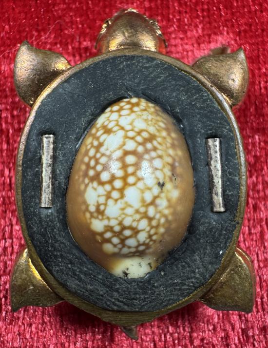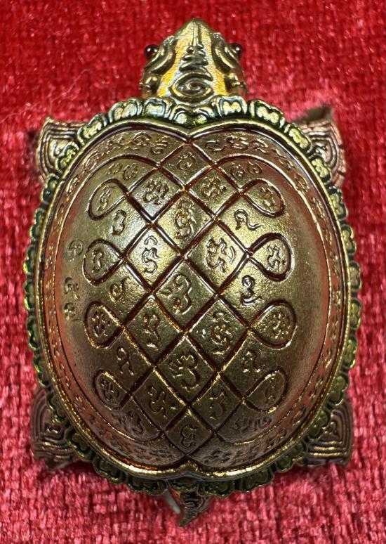 พญาเต่าเรือนมหาลาภ รุ่น "โคตรเศรษฐี"ด้านหลังอุดเบี้ยแก้ด้านในบรรจุปรอท ฝังตะกรุดมหาลาภเงินแท้ 2 ดอก เนื้อทองแดงลงยา 3 สี หลวงพ่อทอง วัดบ้านไร่ จ.นครราชสีมา |