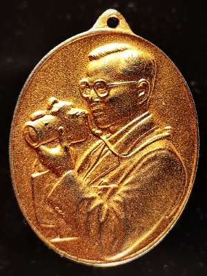 เหรียญในหลวง รัชกาลที่๙ รุ่นทรงกล้อง พระราชพิธีมหามงคลเฉลิมพระชนมพรรษา ๖ รอบ พ.ศ. ๒๕๔๒ เนื้อกะไหล่ทองพ่นทราย |