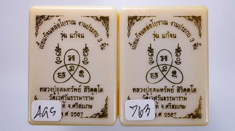 *ทีเดียว 2 ลูก 2 เนื้อ หลวงปู่มหาศิลาร่วมเศก เบี้ยแก้จนหล่อโบราณ ประกบ3ชิ้น อุดมวลสาร หลวงปู่อุดมทรัพย์ สิริคุตโต วัดเวฬุวันธรรมาราม สวยมาก เคาะเดียวแดง*