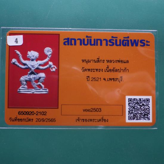 หนุมานหล่อโบราณ 4 กร เนื้ออัลปาก้า หลวงพ่อแล วัดพระทรง จ.เพชรบุรี ปี 2521....4.. (69.2.12