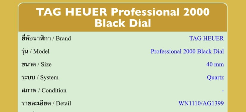นาฬิกา TAG HEUER รุ่น Professional 2000 Back Dial ระบบQuartz WN1110/AG1399