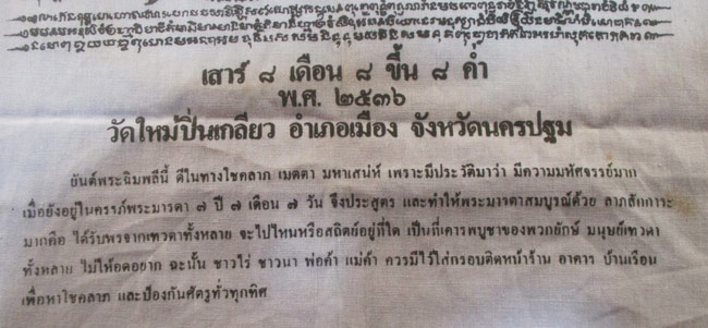 ผ้ายันต์ วัดใหม่ปิ่นเกลียว อ.เมือง จ.นครปฐม ครับ (พระบ้าน ครับ) |