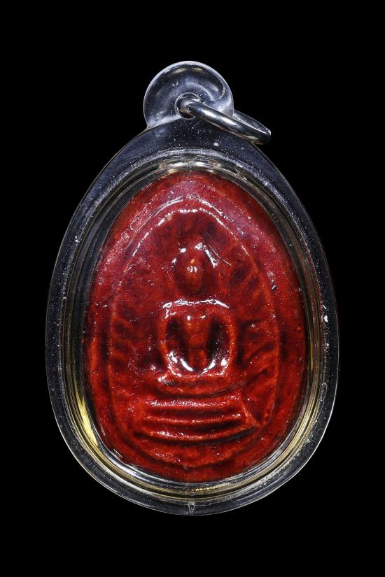 พระพิมพ์ขุนแผนใบพุทรา(กลีบบัว มีกิน) เคลือบสีแดง อาจารย์ลอย โพธิ์เงิน วัดรัตนชัย(จีน)