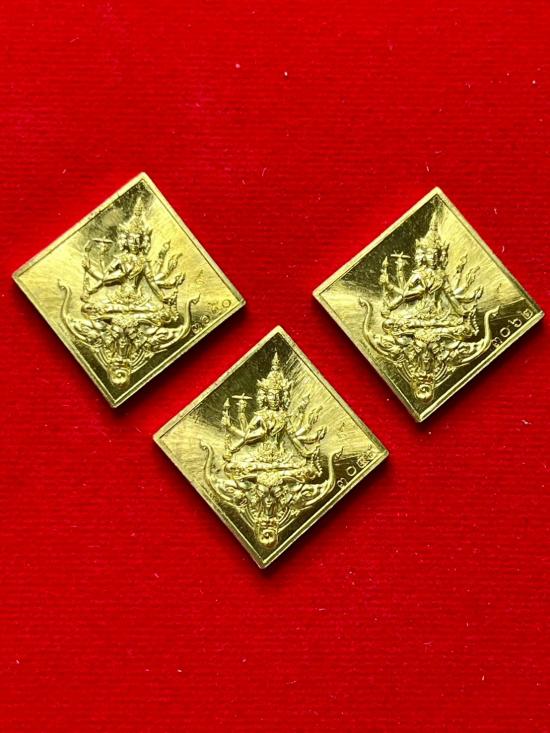 เหรียญพรหมเอราวัณ หลวงพ่อสิน วัดละหารใหญ่ เนื้อทองฝาบาตร ปี 2559 ( 1 กระดาน 3 องค์) |