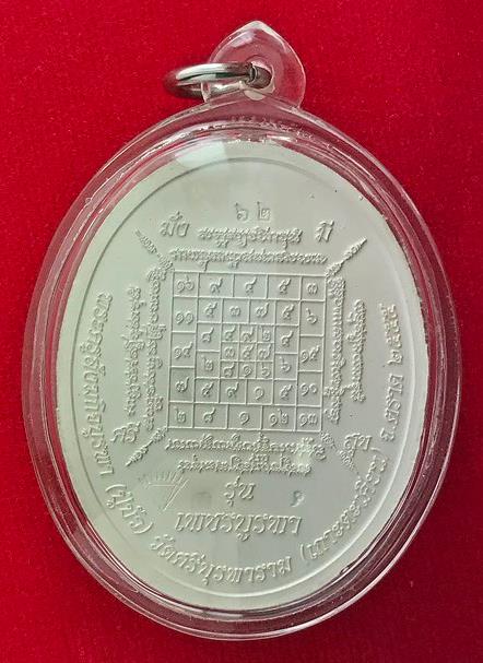 เหรียญเพชรบูรพา หลวงปู่บัว ปี2555 เนื้อเงินลงยาสีเขียว หมายเลข 62