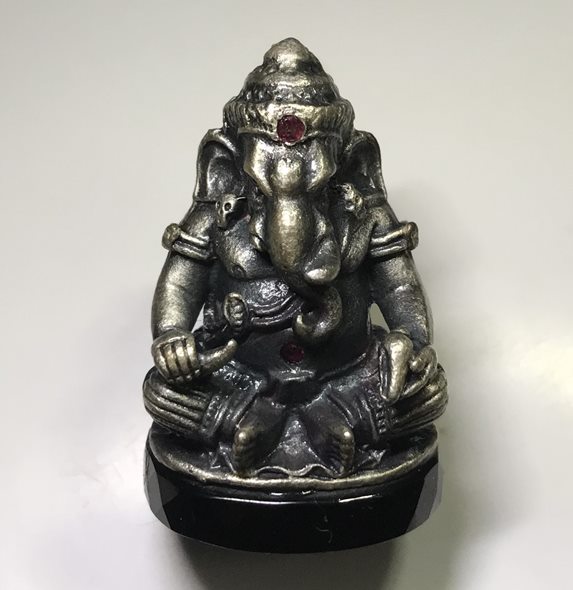 ***เคาะเดียว***รูปหล่อพระพิฆเนศ เนื้อเงินซาติน ฝังพลอย ฐานนิล # 5698วัดบวรฯ ปี 2544 (ฐาน 1.8 ซ.ม. สูง 2.8 ซ.ม.)