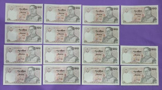 ธนบัตร 10 บาท แบบ 12 จำนวน 15 ฉบับ เลขเรียง 2 ชุด |
