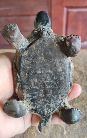 พระบูชาหลวงปู่หลิวนั่งเต่า วัดไร่แตงทอง รุ่นเศรษฐีมหาศาล ปี 2554 เนื้อทองเหลืองรมดำ มีจาร ความยาวเต่า 6 นิ้ว สูง 5 นิ้ว อ.ชลสร้าง |