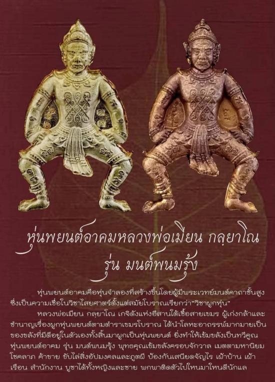 หุ่นพยนต์อาคม มนต์พนมรุ้ง ปั๊มตัน หลวงพ่อเมียน กัลยาโณ วัดจะเนียง ต.บ้านสองชั้น อ.กระสัง จ.บุรีรัมย์ เนื้อสัตตะโลหะ พร้อมเลี่ยมใส่น้ำมัน สร้าง 1599 ตน