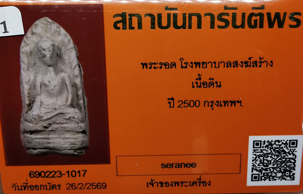 พระรอด โรงพยาบาลสงฆ์ เนื้อดิน มีหน้ามีตา ปี2500 จ.กรุงเทพฯ + บัตรG-pra สภาพสวยเดิมค่ะ |