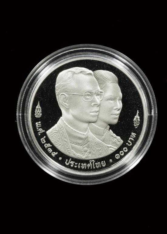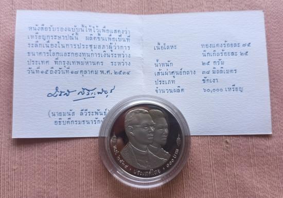 เหรียญกษาปณ์ชนิดราคา 100 บาท ร.9-ราชินี ที่ระลึกการประชุมสภาผู้ว่าการธนาคารโลก WORLD BANK ปี2534 ((( นิกเกิล ขัดเงา ))) มีใบ เก่าเก็บ