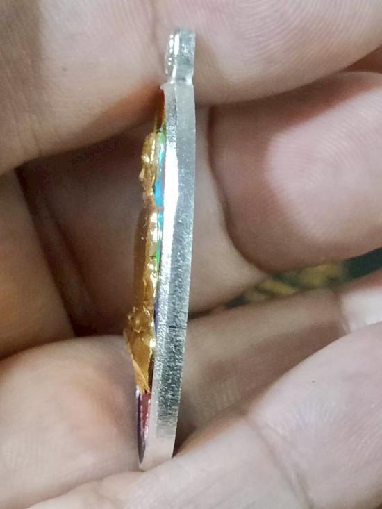เหรียญหลวงปู่ฝั้น ปสาโท วัดศรีถมอรัตน์(หน้าผา) จ.เพชรบูรณ์ รุ่นเมตตา มหานิยม เนื้อชุบเงิน ลงยาเต็ม หน้ากากชุบทอง โค๊ต ตัวนะ หมายเลข 4 |