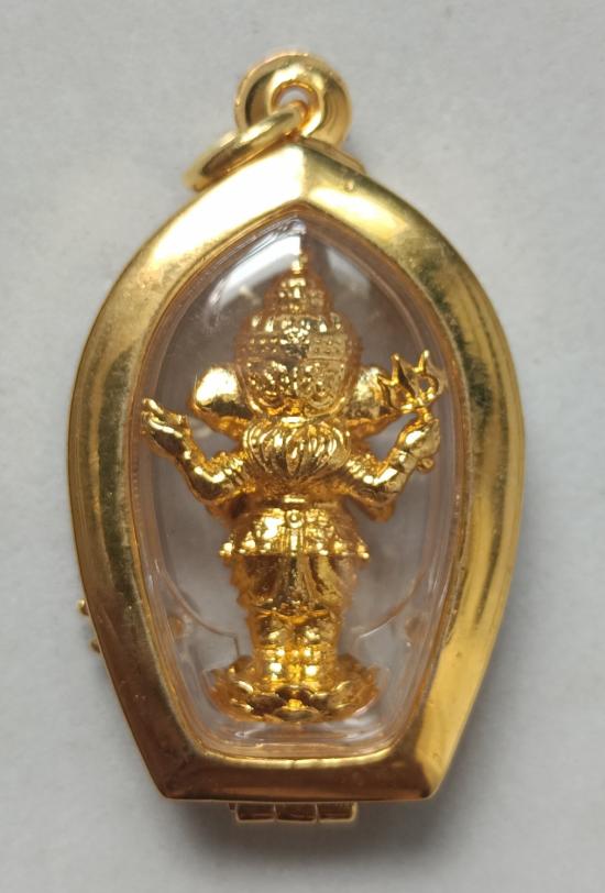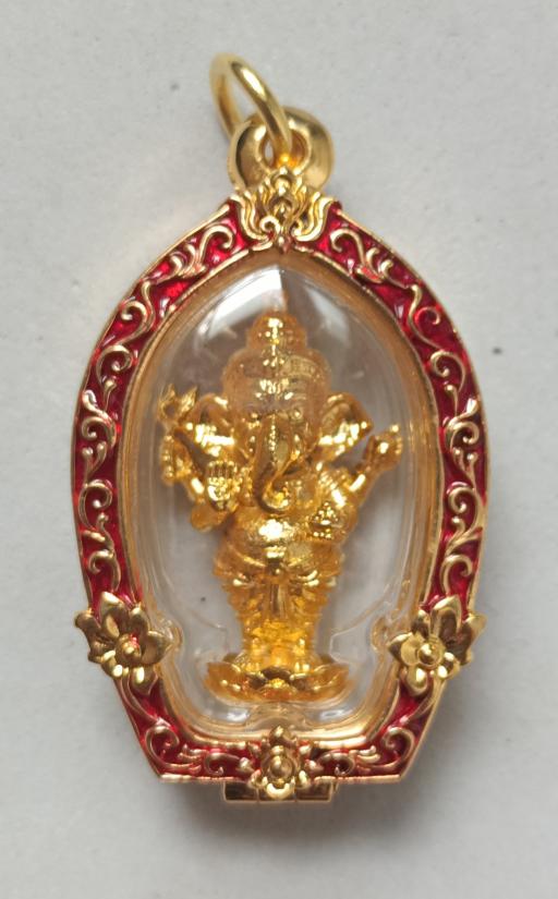 วัดใจเคาะเดียวแดงจ้า รูปหล่อพระพิคเณศ เนื้อนวะชุบทอง พร้อมตลับชุบทองลงยาแดง เลี่ยมกันน้ำ เคาะเดียวแดงจ้า |