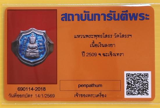แหวนเงินลงยาหลวงพ่อโสธร2509 สภาพสวย+บัตรจี