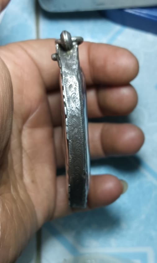 เลี่ยมเงินบาตรน้ำมนต์ แถมพระให้ไปด้วยคับ ขนาด 7 เซนครับ |