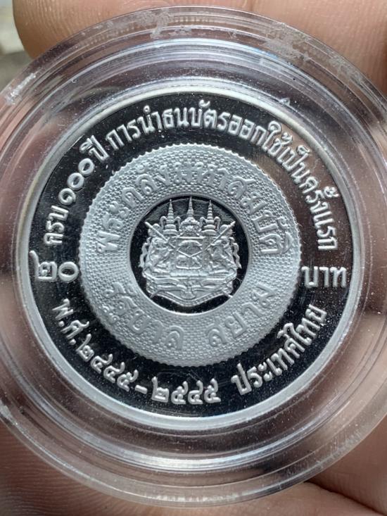 เหรียญกษาปณ์โลหะสีขาวขัดเงา (คิวโปรนิกเกิล) เหรียญกษาปณ์ที่ระลึกพระคลังมหาสมบัติ ครบ 100 ปี การนำธนบัตรออกใช้เป็นครั้งแรก พ.ศ.2445 2545 |