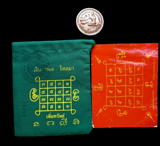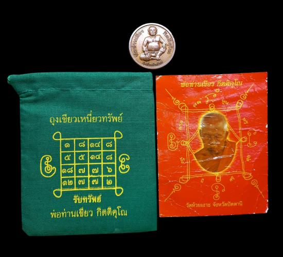 ชุดถุงเขียวเหนี่ยวทรัพย์ พร้อมรูปถ่าย เหรียญขุนช้างพ่อเขียว วัดห้วยเงาะ |