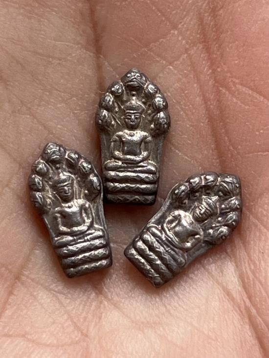 พระนาคปรกใบมะขามเนื้อเงิน หลวงปู่บุญ วัดบ้านนา จ.ระยอง รุ่นอายุ 84ปี 3เม็ด