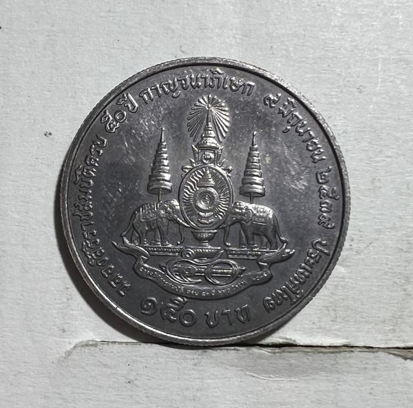 เหรียญกษาปณ์ 150 บาท ที่ระลึกพระราชพิธีกาญจนาภิเษก รัชกาลที่ 9 ทรงครองสิริราชสมบัติครบ 50 ปี ปี 2539 ครับ |