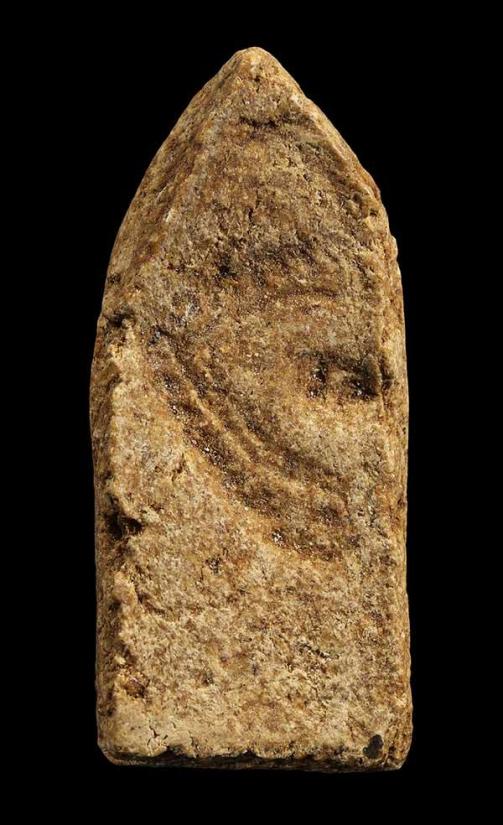 เนื้อผงผสมว่านสูงขนาด 1 นิ้วกว่าๆ ด้านหลังกดพระไว้มีซุ้มเหมือนพระขุนแผนไม่ทราบที่ |