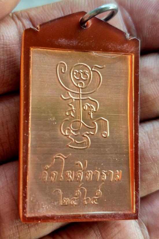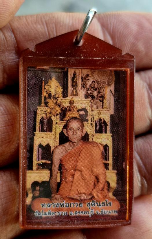 วัดใจ รูปถ่ายขนาดห้อยคอ หลวงพ่อกวย วัดโฆสิตาราม หลังปั๊มยันต์ 2565 (ด้านหลังแผ่นโลหะเป็นแค่เงาจากการถ่าย)