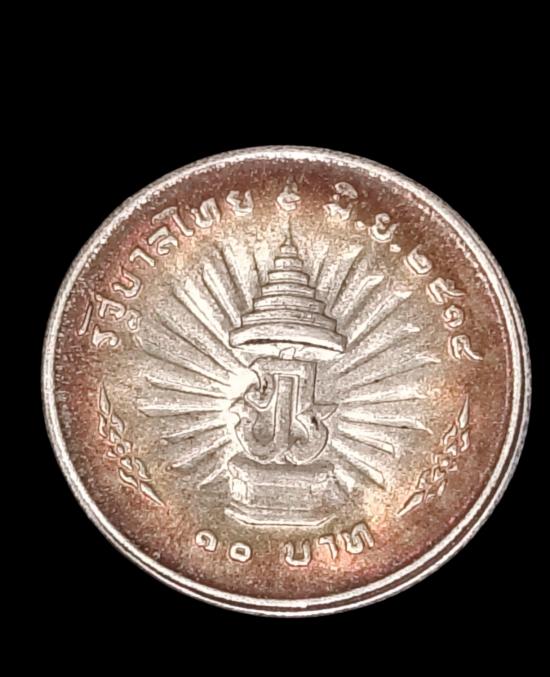 เหรียญกษาปณ์ที่ระลึกเนื้อเงินชนิดราคา 10 บาท เนื่องในโอกาสพระราชพิธีรัชดาภิเษก ครองราชย์ครบ 25 ปี ของพระบาทสมเด็จพระเจ้าอยู่หัวภูมิพลอดุลยเดช (รัชกาลที่ 9).