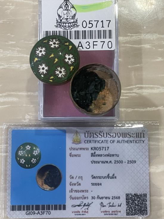 (เคาะแดง2500) +บัตรสมาคม สีผึ้งเขียวหลวงพ่อทาบ วัดกระบกขึ้นผึ้ง