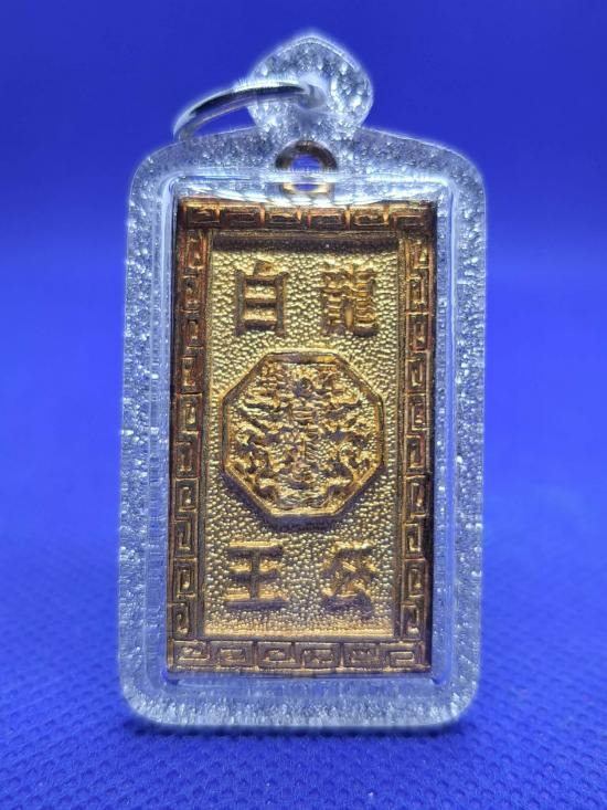 ป้ายนำโชค หลวงปู่มังกรขาว กะไหล่ทอง เลี่ยมกันน้ำ เคาะเดียว