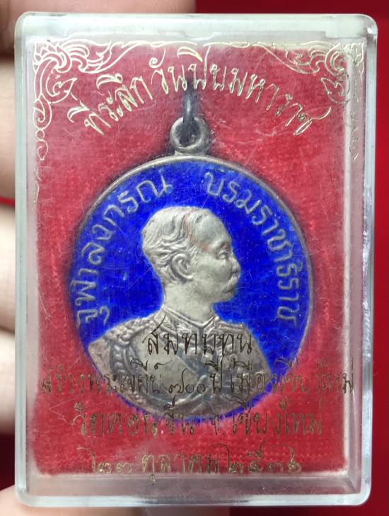 แดงเคาะแรก...เหรียญ "เนื้อเงินลงยา" รัชกาลที่ 5 วัดดอนจั่น เชียงใหม่ ที่ระลึกวันปิยะมหาราช สมทบทุนสร้างพระเจดีย์ 700 ปี เมืองเชียงใหม่ ปี 2536 ตอกโค้ด จ (น้ำหนัก 14.6 กรัม) พร้อมกล่องเดิมจากวัดครับ