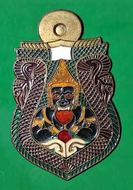เหรียญราหูอมจันทร์พลิกดวงชะตา (รุ่นสุริยันจันทรา) เนื้อฝาบาตรลงยาดำ วัดศีรษะทอง จ.นครปฐม |