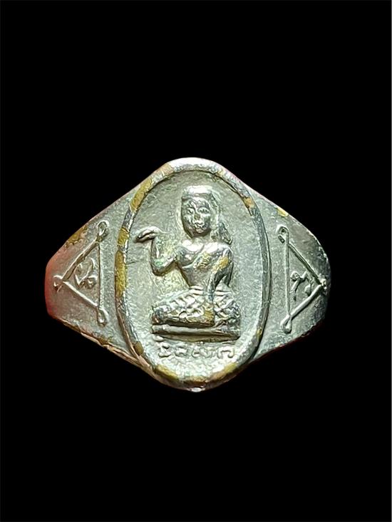 แหวนแม่นางกวัก ออกงานผูกพัทธสีมา ปี ๒๕๒๑ เนื้อทองเหลืองชุบนิเกิ้ล หลวงพ่อกวย วัดโฆสิตาราม ชัยนาท