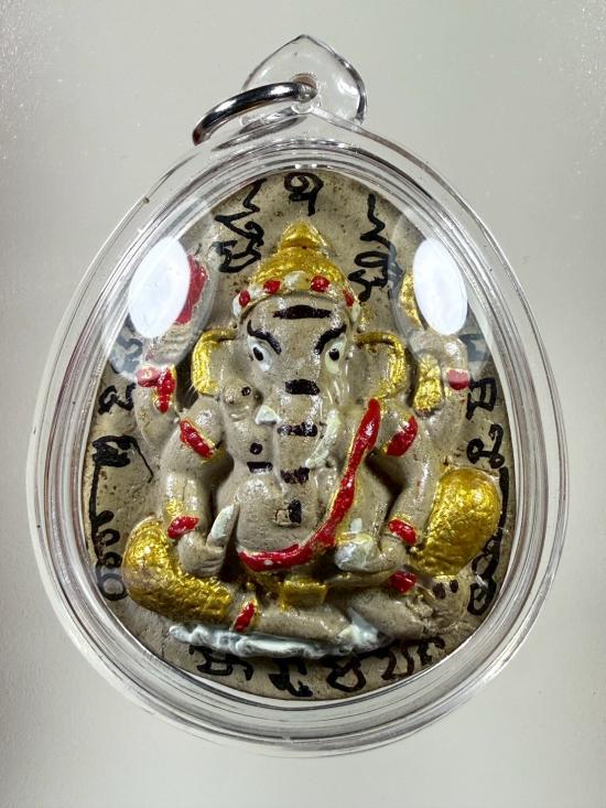 เคาะเดียว 330... พระพิฆเนศ พระอาจารย์อึ่ง วัดเซิงหวาย จ.กรุงเทพ หลังฝั่งเหรียญหลวงพ่อผลฯ เนื้อผงมวลสารเพ้นท์สี จารยันต์ พร้อมเลี่ยม |