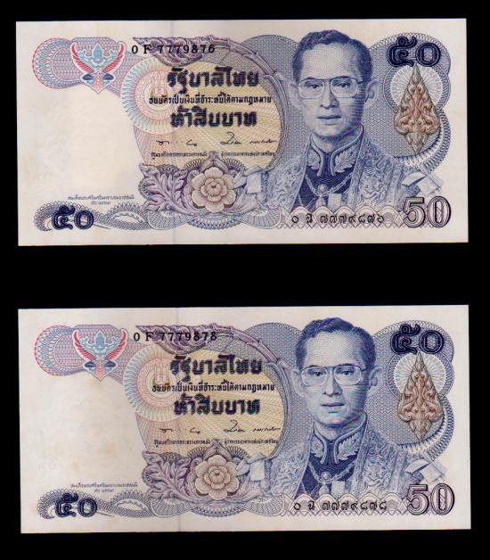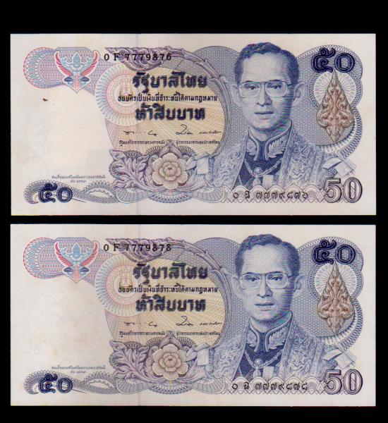 ## ธนบัตร 50 บาท ## ลายน้ำย่า ## 2 ฉบับ ## ไม่ผ่านการใช้ |