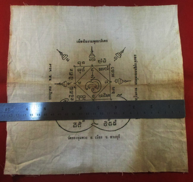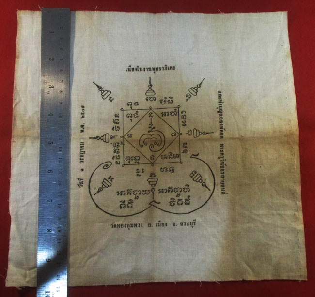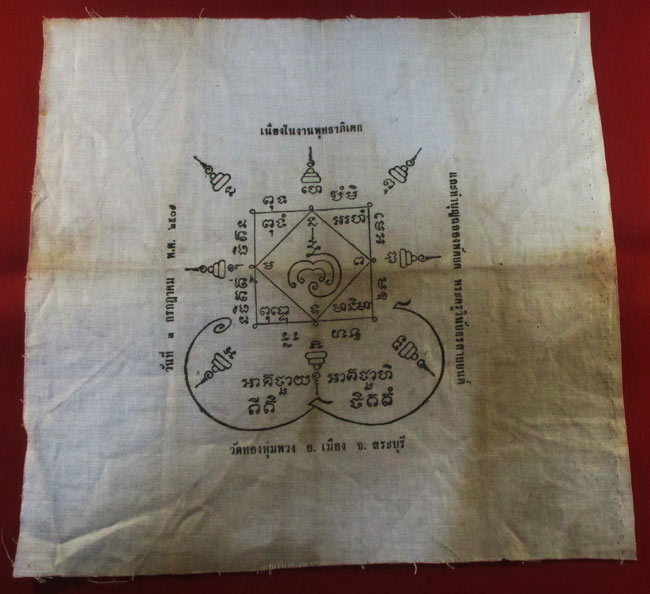 ผ้ายันต์ วัดทองพุ่มพวง อ.เมือง จ.สระบุรี พ.ศ. ๒๕๐๙ ครับ