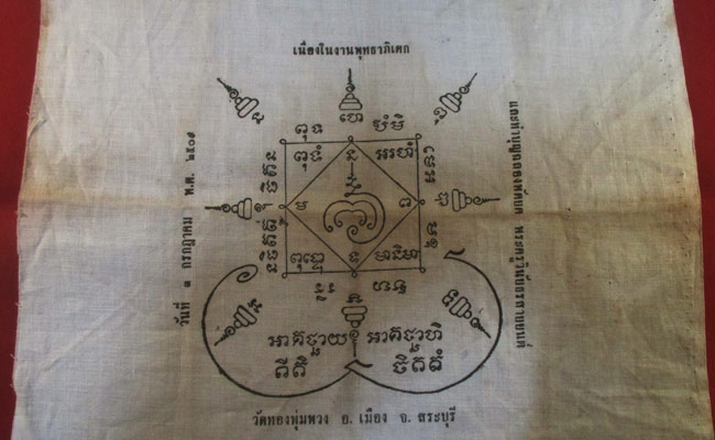 ผ้ายันต์ วัดทองพุ่มพวง อ.เมือง จ.สระบุรี พ.ศ. ๒๕๐๙ ครับ (พระบ้าน ครับ) |
