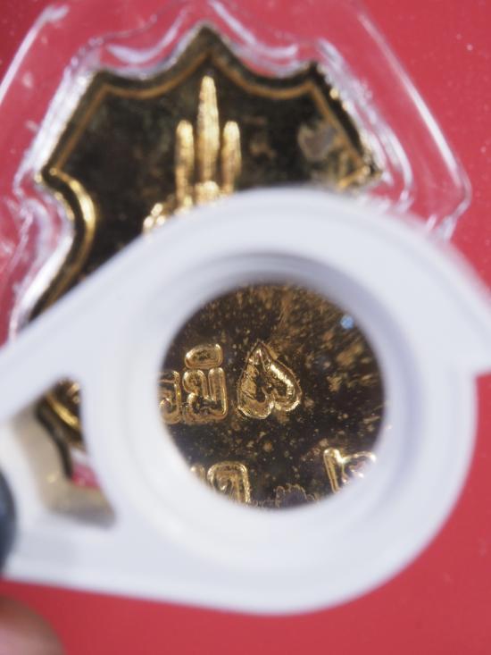 เหรียญอาร์มพญาครุฑ รุ่นมหาบารมี หลวงพ่อวราห์ เนื้อกะไหล่ทอง ปี 2538 ตอกโค้ดใบโพธิ์ เลี่ยมกันน้ำพร้อมใช้ |