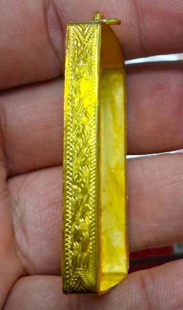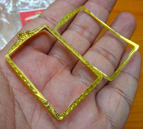 กรอบทองมือสอง ใส่พระสมเด็จยอดนิยน หรืออื่นๆทั่วไปที่ไกล้เคียง หน้าจอกว้าง 2.8 ซม., สูง 4.0 ซม. น้ำหนัก 2.81 กรัม เคาะเดียว