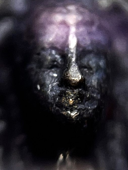 -เหรียญหล่อ จมูกยุบมีตำหนิทั้งบนล่าง + หล่อมีรูตำหนิ ด้านบนมือขวา