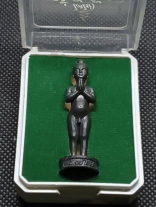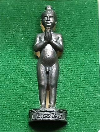 ไอ้ไข่ เด็กวัดเจดีย์ รุ่นมั่งมีศรีสุข วัดสระสี่มุม อ.สิชล จ.นครศรีธรรมราช ปี๒๕๕๙ องค์ยืนรมดำ ๔.๕ ซม. องค์ใหญ่เกือบ 2 นิ้ว หมายเลข 303 เข้มขลัง พร้อมกล่องเดิม เคาะเดียวแดง |