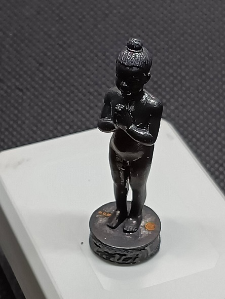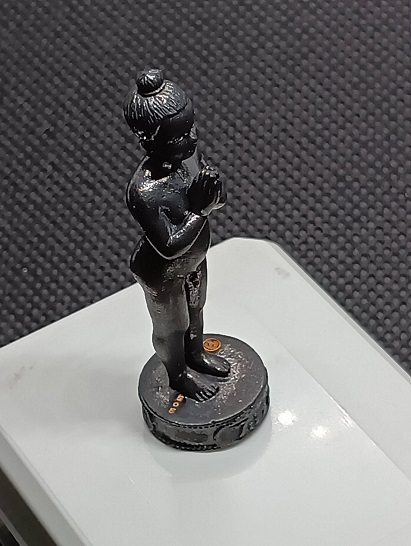 ไอ้ไข่ เด็กวัดเจดีย์ รุ่นมั่งมีศรีสุข วัดสระสี่มุม อ.สิชล จ.นครศรีธรรมราช ปี๒๕๕๙ องค์ยืนรมดำ ๔.๕ ซม. หมายเลข 303 เข้มขลัง พร้อมกล่องเดิม |